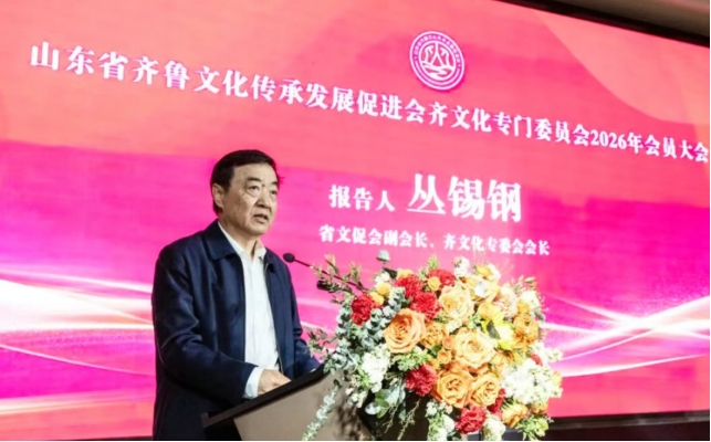 2026年3月7日,山东省文促会齐文化专委会在山东知味斋二楼会议厅召开2026年度会员大会。会议传达了省文促会2026年会员代表会议精神,并就专委会2025年工作总结与2026年工作部署进行了审议。我校齐文化研究中心负责人贾万刚,教师刘春迎、潘晓宇受邀参会。
