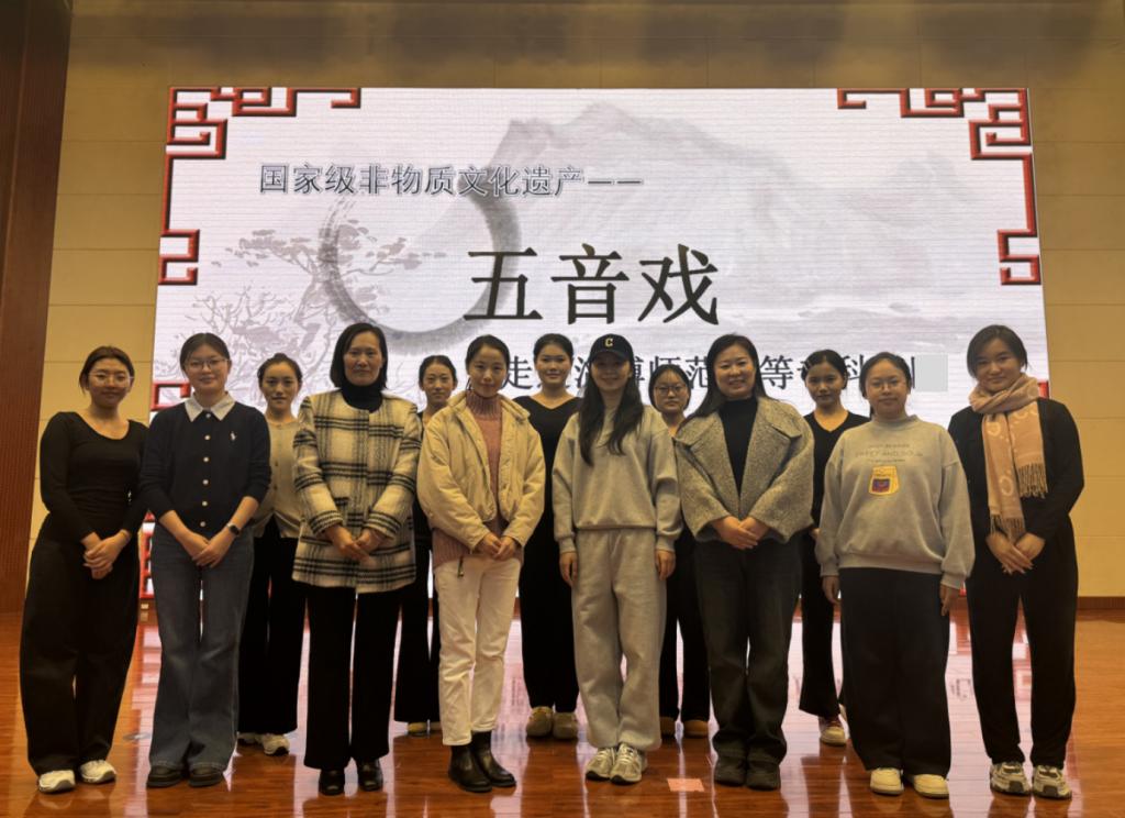 11月20日,淄博师专人文学院五音戏文化传承与应用研究中心邀请淄博市五音戏剧院的路萌、路金红两位老师走进校园,为我校“小梅花”戏曲社团开展了一场深入且专业的五音戏排练指导活动。本次指导不仅是一场生动的“非遗”活态传承课,更是校地携手深化美育教育、播撒传统文化种子的具体实践。