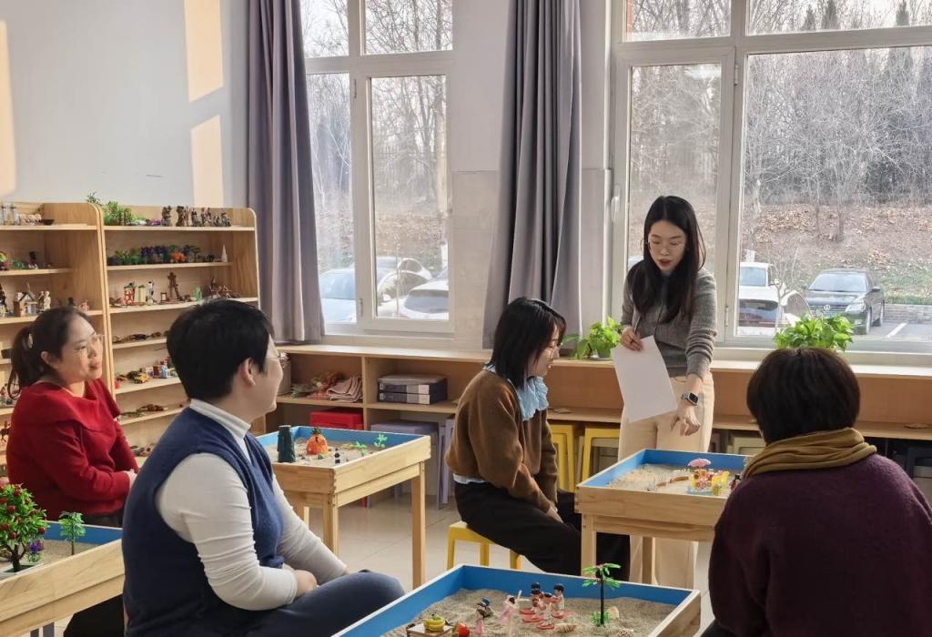 为切实关爱教工心理健康,助力教工更好地理解专业建设内涵,搭建情感联结与思想交流的平台,2025年12月30日下午,“沙间拾心,与心对话”沙盘游戏活动体验沙龙在教师教育中心沙盘游戏实验室温馨开启。本次活动由人文学院主办、儿童发展与教育研究中心承办,吴萌、马慧茹老师主持,耿国彦院长、陈磊书记莅临现场指导,多位教工积极参与其中。