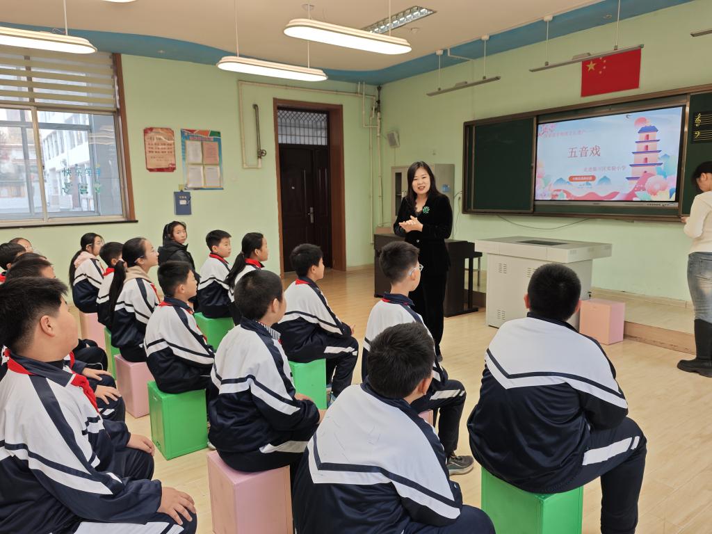 为弘扬中华优秀传统文化,推动国家级非物质文化遗产“五音戏”在少年儿童中的发展与传承,2025年11月26日,由淄博师专“小梅花”戏曲社团与人文学院五音戏文化传承与应用研究中心联合举办的“五音雅韵润童心 戏曲文化共传承”系列活动首先在淄川区实验小学精彩上演。活动中社团的大学生们与实验小学的小学生们共同开启了一场趣味十足的五音戏文化探索之旅。