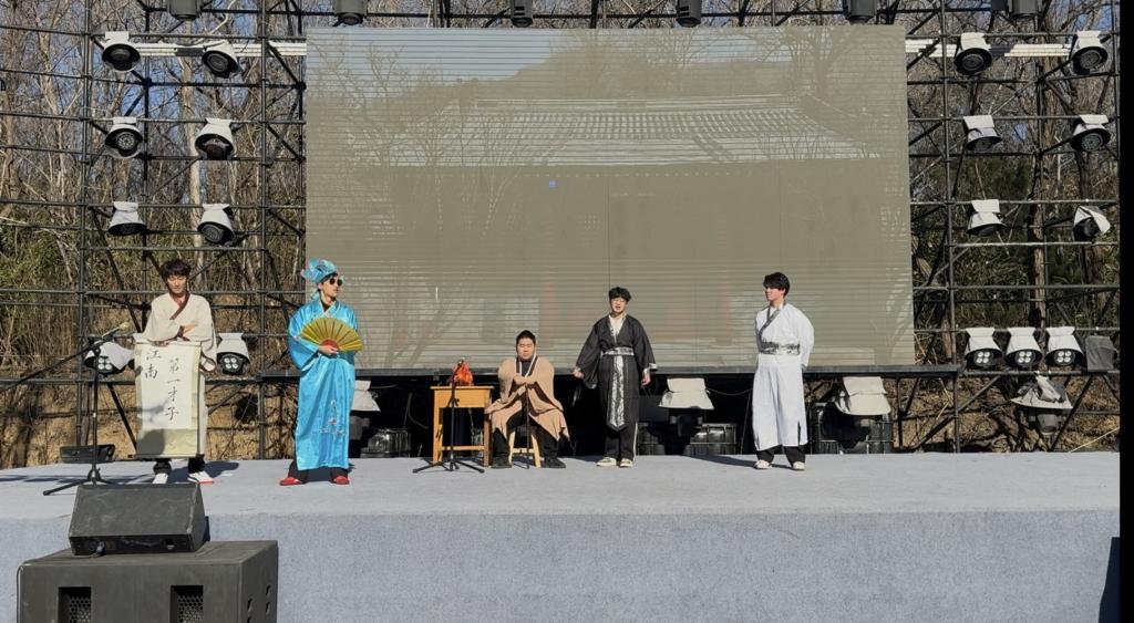 2025年12月25日,微剧编演工坊与惊蛰微剧团、凝思话剧社的同学们在翟淼淼老师的带领下,走进淄博聊斋城开展“只有聊斋”主题微剧专场演出,通过“线下沉浸式演出+线上同步直播”的方式,为游客与观众呈现了五部由师生共创的原创微剧。